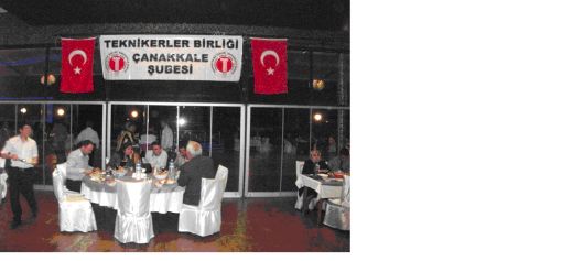 ÇANAKKALE ŞUBEMİZİN GELENEKSEL GECESİ ÇOŞKU İÇİNDE GEÇTİ Gecenin açılış konuşmasını yapan şube başkanı Muammer Özden ; gelen konuklara katılımlarından dolayı teşekkür ederken tekniker sorunları ile alakalı olarak kısa bir açıklama yaptı. Teknikerler Birliği Genel Merkezi adına söz alan genel başkan Yardımcımız Rıdvan Sarımehmetoğlu ise; “Çanakkale şubesinin yaptığı çalışmaları gerek mesleki açıdan ve gerse gerekse sosyal açıdan taktir ediyoruz, bu çalışmalarda emeği geçen tüm şube yönetim kurulu üyelerine teşekkür ediyorum” dedi. Sarımehmetoğlu: “Bu gibi büyük organizasyonların hiçbir zaman mükemmel olamayacağını zaman zaman aksaklıkların olabileceğini, yaşanan aksaklıkların olgunlukla karşılanması gerektiğini vurgularken, işlerinin yoğunluğundan dolayı geceye katılamayan genel başkanımız Ertan Kılıç’ın Çanakkale şubesine, yaptığı başarılı çalışmaların devamı dileyen mesajını iletti.” Çanakkale Şubesi; fanatik taraftarlar için gecenin yapılacağı sahneye dev ekran koydurmuş, geceye gelen taraftarların maçı izlemelerini sağlamıştır 12 mayıs 2012 günü düzenlenen geceye Genel Merkezi temsilen, genel başkan yardımcılarımız; Enver Erdoğdu, Halil Sert, Rıdvan saımehmetoğlu ve Mecit Özüdoğru katılmışlardır.