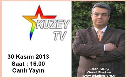 GENEL BAŞKANIMIZ KILIÇ KUZEY TV'DE CANLI YAYIN KONUĞU OLACAK Geniş bir yayın alanı ve önemli seyirci kitlesine sahip olan KUZEY TV'de; Genel Başkanımız Ertan KILIÇ canlı yayın konuğu olacak, Tekniker sorunlarını kamuoyu ile paylaşacaktır. İstihdamdan, görev-yetki-sorumluluklara, meslek odamızın kurulmasından lisans tamamlama ve DGS konularına değin çok kapsamlı konuların görüşüleceği programı kaçırmamanızı öneririz. ![]() |